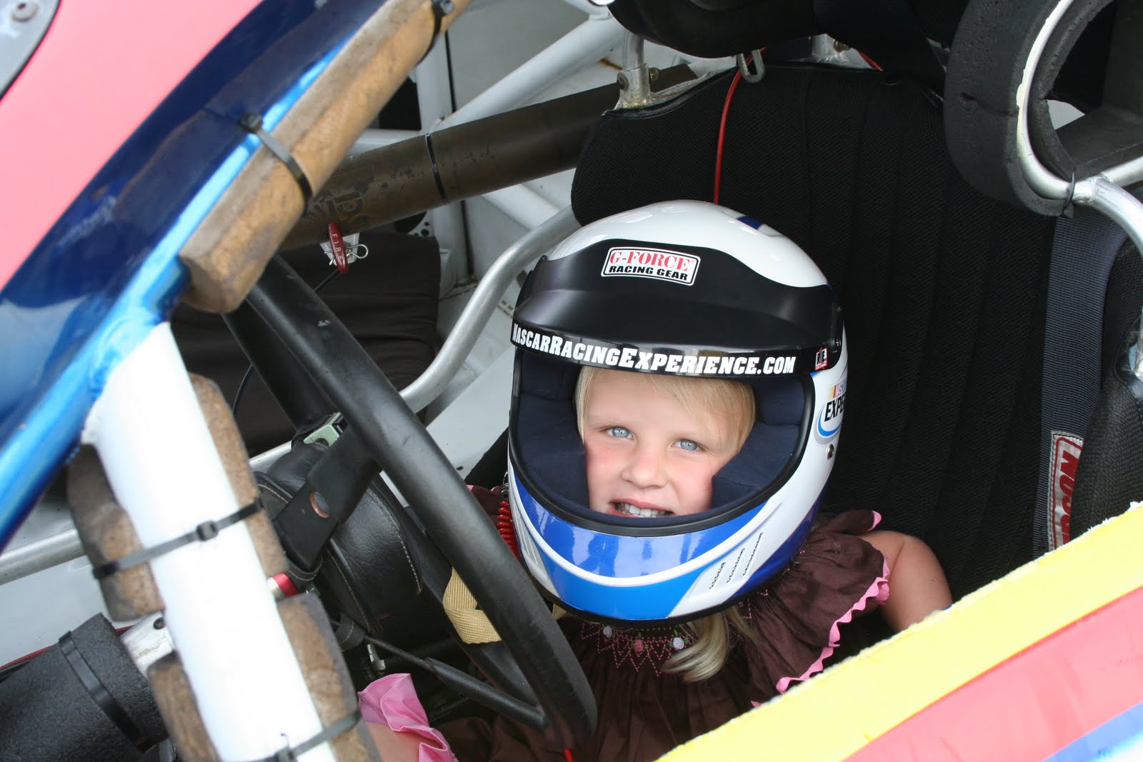 Bright and early Sunday morning (again, bright and early) we headed to the Talladega Super Speedway for some racing. I decided several months ago that I wanted to do something different for Chris' birthday. So, I decided to purchase the Nascar Driving Experience package for him. We had to be at the track by 7:30am to check-in. Chris had class for 40 minutes and then they suited him up in his racing attire and put him in the car. While he was in class, we enjoyed seeing all of the race cars. The pit crew even allowed Blair to get in the car, try on the helmet and pretend to drive. She thought that was pretty cool.